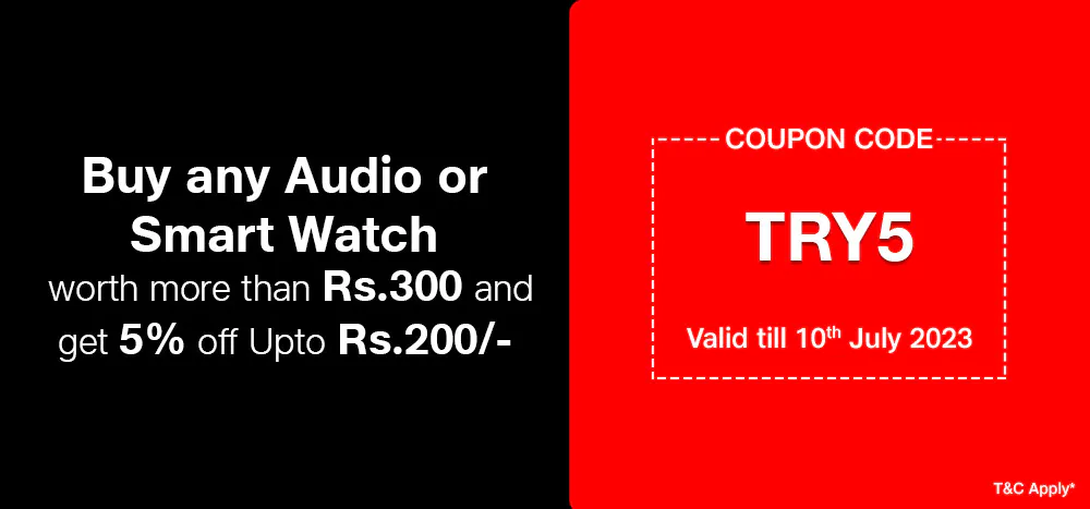 The Offer shall be valid on purchase of Audio (Headphones, Neckbands, TWS & Speakers), Smart wearables, Home Audio (Soundbars, Home Theatres) sold by Reliance. For each Eligible Product, the minimum value shall be Rs. 300 (Rupees Three Hundred Only) and the maximum value shall be Rs. 4000 (Rupees Four Thousand Only). The Offer shall not be valid for the excluded selection.