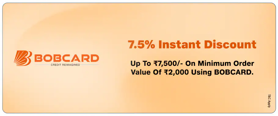 7.5% Instant Discount up to Rs 7500/- on minimum order value of Rs 2000 using BOBCARD.