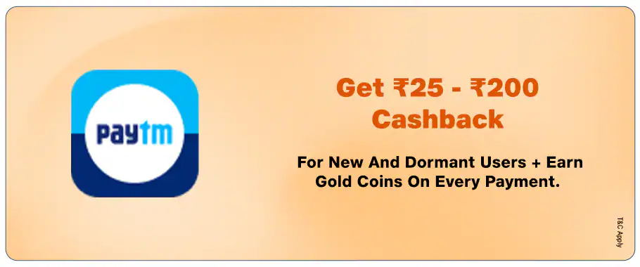Get ₹25 -₹200 cashback for New and Dormant Users + Earn Gold Coins on every payment