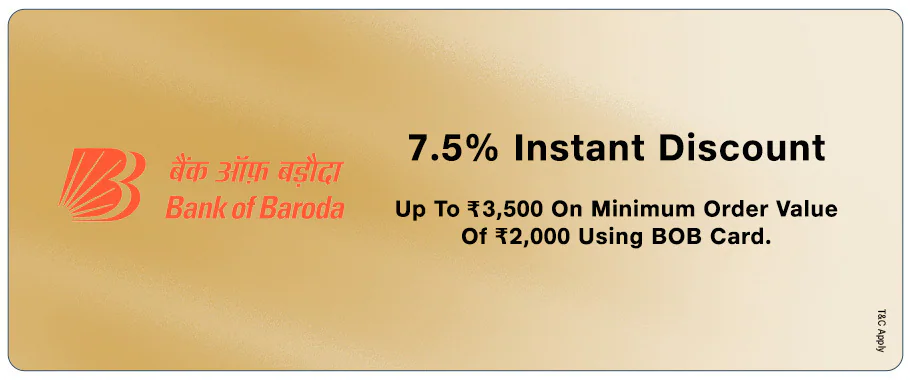 7.5% Instant Discount up to Rs 3500/- on minimum order value of Rs 2000 using BOBCARD. T&C Apply