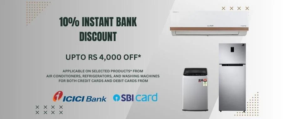 ICICI Bank offers on selected products* in Air Conditioners, Refrigerators, and Washing Machines for Credit Cards Transactions.