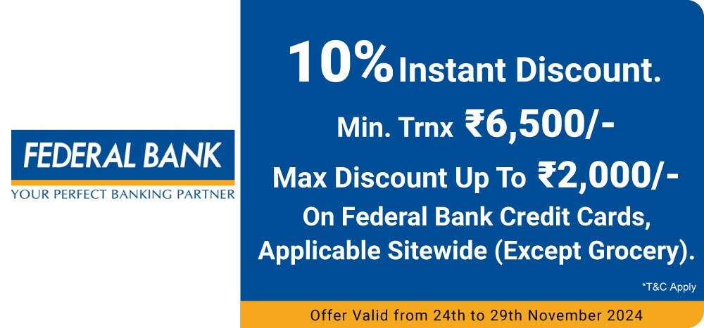 10% Inst Dis Min Trnx 6500/- Max Dis Up to Rs. 2000/- On Federal Bank Credit Cards, App Sitewide Except Groc Coupon Code