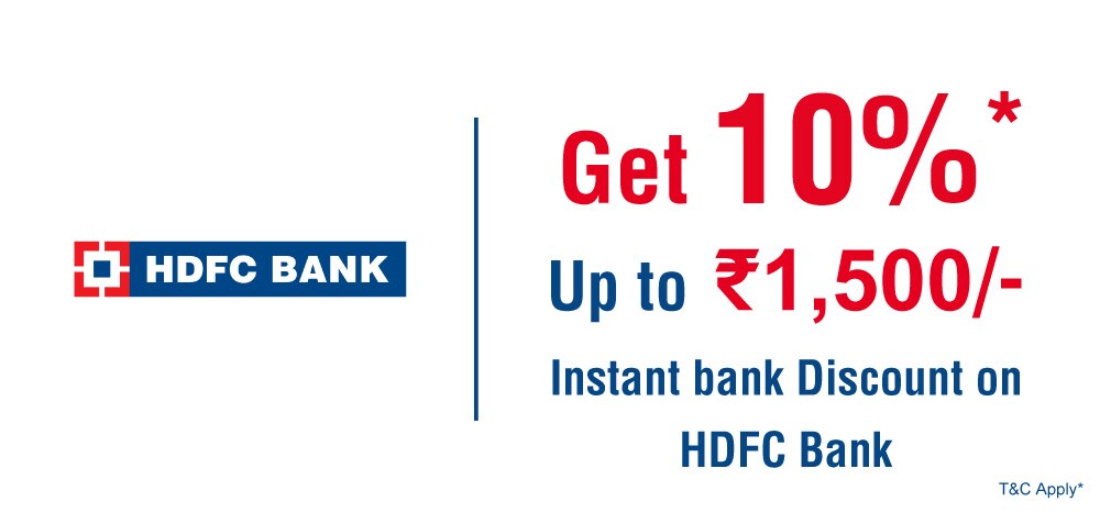 - Instant Discount of 10% (upto Rs.1500) applicable on HDFC Credit cards EMI Transactions.