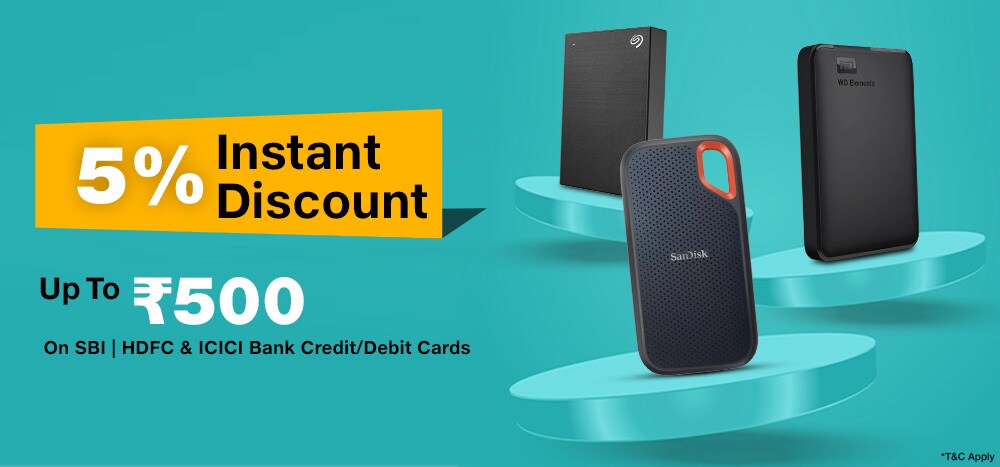 Upto 5% Instant Discount up to Rs. 500 on SBI, HDFC AND ICICI Bank Credit/Debit Cards & EMI transactions