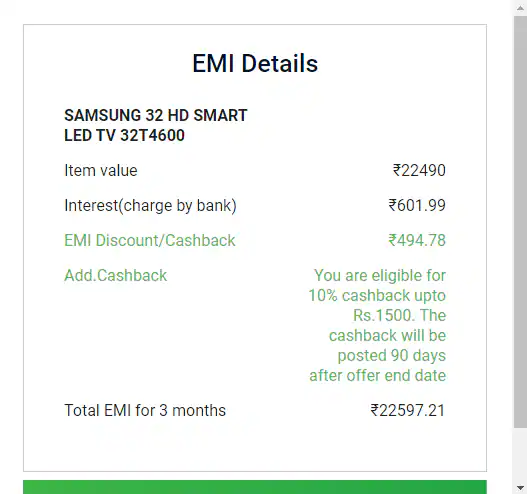 - While Selecting EMI Plan, Check EMI Details and the Cashback details would be reflecting.