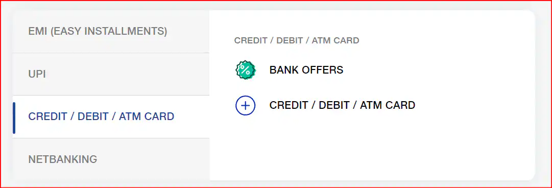 - To avail the offer, user need to select the option “Bank Offers” under the ‘Credit / Debit / ATM Card’ Tab on Payment Page and choose the applicable Bank