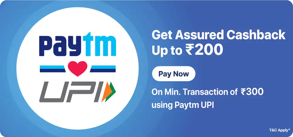 Assured cashback up to Rs 200 on Min.Transaction of Rs.300 using Paytm UPI