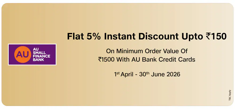 Flat 5% Instant Discount up to Rs.150 on Minimum Order Value of Rs 1500 with AU Bank Credit Cards. Coupon Code