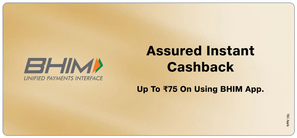 - Assured Instant Cashback of ₹25 on using BHIM app.