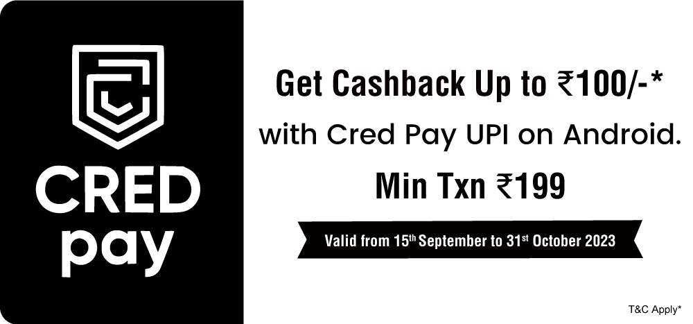 Cred Pay UPI - Get Cashback up to Rs.100 with Cred Pay UPI on Android. Min Txn Rs.199. T&C Apply