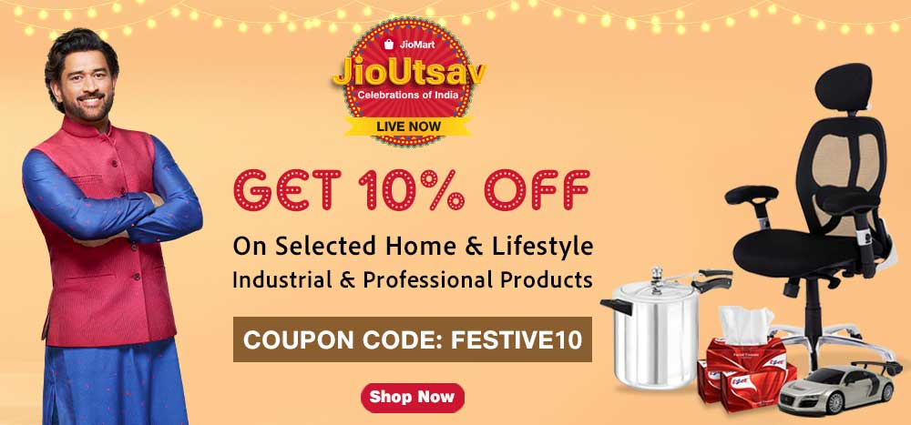 The Offer shall be valid on selected Home & lifestyle and Industrial & Professional Supplies, sold by Reliance on JioMart. This does not include any third-party seller product and any other item or product that may be identified by Reliance from time to time.