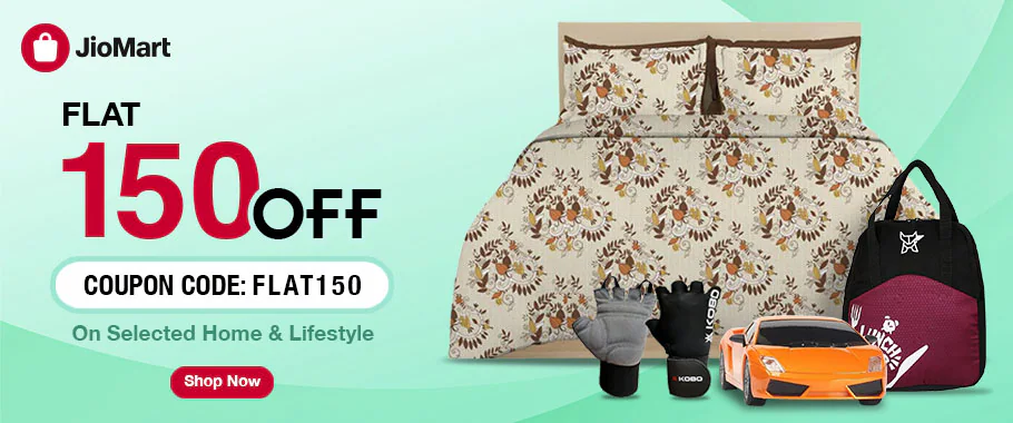 The Discount of maximum Rs.150.00 (Rupees One Hundred Fifty Only) can be availed on a purchase of Eligible Products sold by Reliance; The Discount Coupon is redeemable only against purchase of Eligible Products on JioMart; i.e. The Offer shall be valid on selective products under Home & lifestyle and Industrial & Professional Supplies sold by Reliance on JioMart. This does not include any third-party seller product and any other item or product that may be identified by Reliance from time to time.
