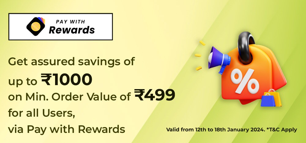 Get assured savings of upto Rs.1000 savings on Min.order value of Rs.499 for all users, via Pay with Rewards. T&C Apply