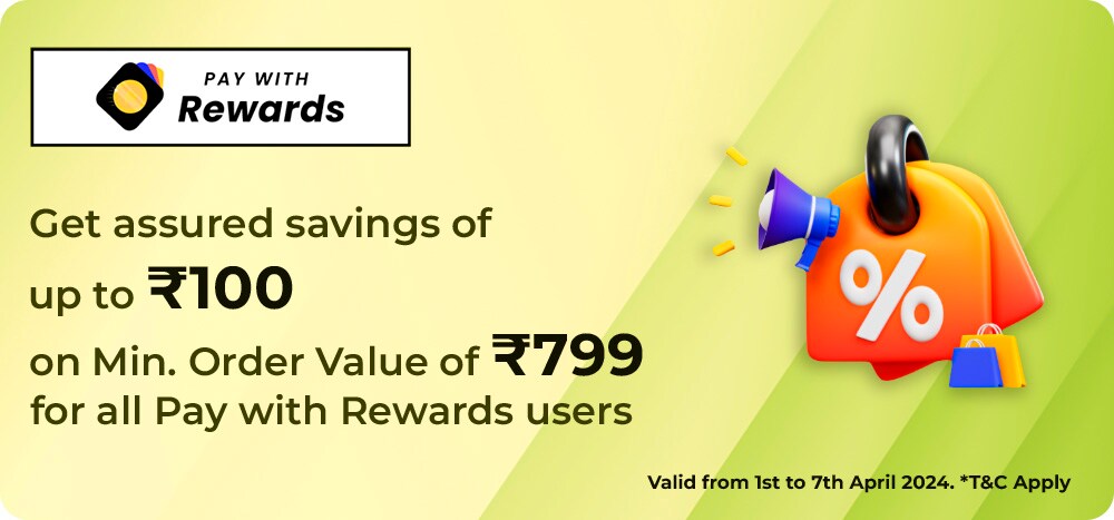 Get assured Savings upto Rs.100 on Min. order value of Rs.799 for all Pay with Rewards users.T&C Apply. Coupon Code