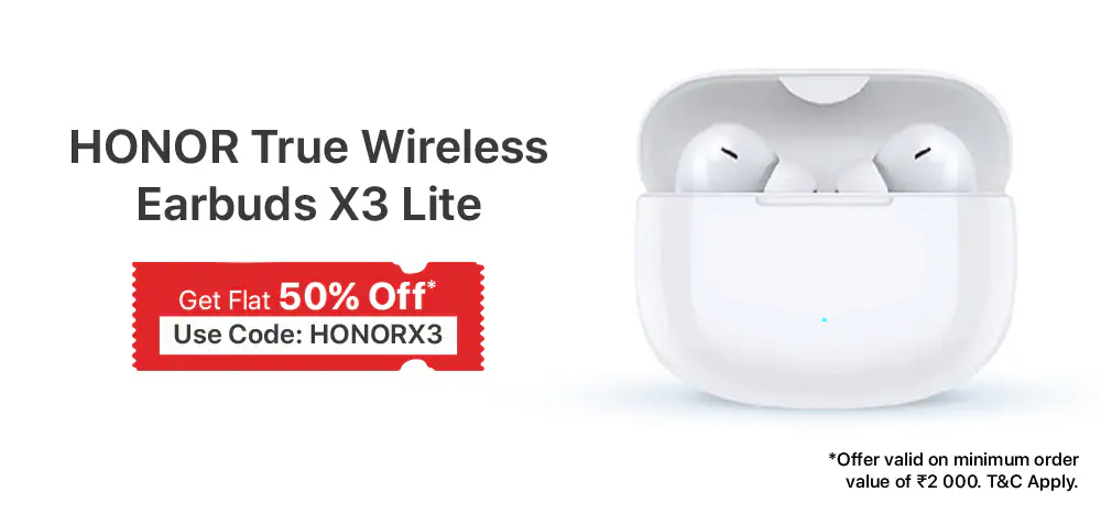 - Upon purchase of Eligible Products of Qualifying Value (defined below), the User shall be given an option to purchase Honor TWS X3, all colour variants sold by Reliance (“Offer Product”) at an instant discount of flat 50% off the selling price, within the Offer Period;