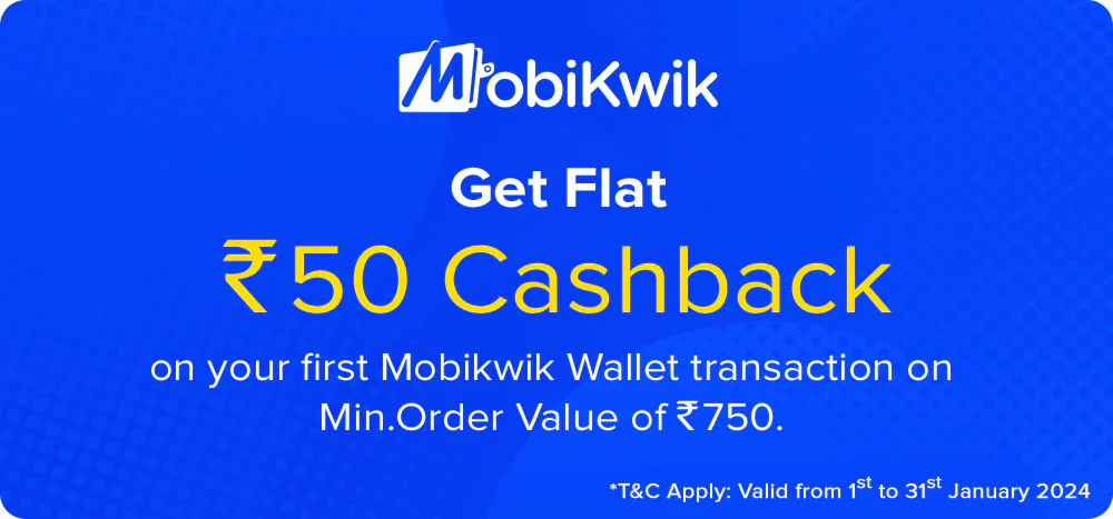 Get Flat Rs.50 cashback on your first Mobikwik Wallet transaction on Min.Order Value of Rs 750. T&C Apply.