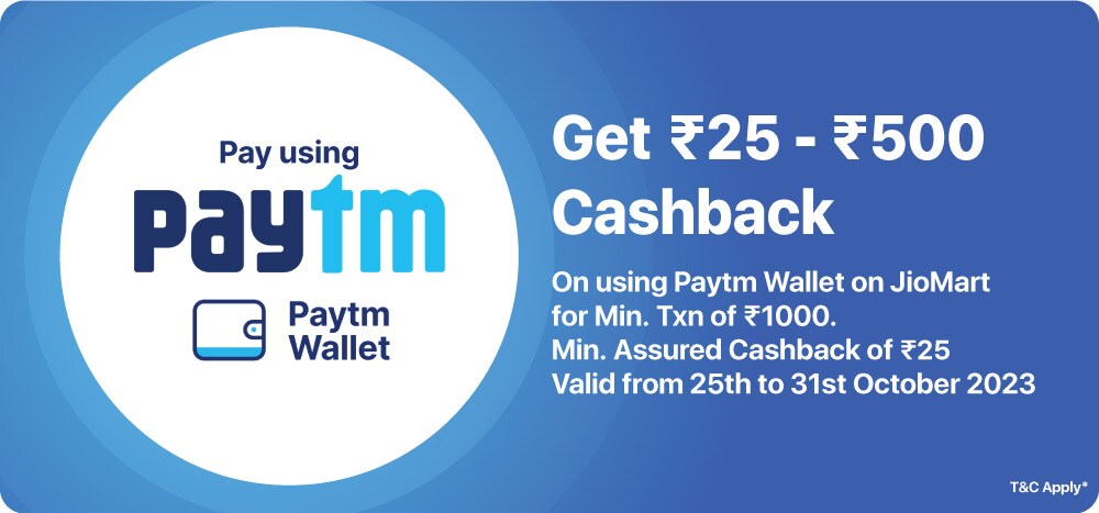 - This offer is applicable only when you Pay on JioMart using Paytm Wallet.