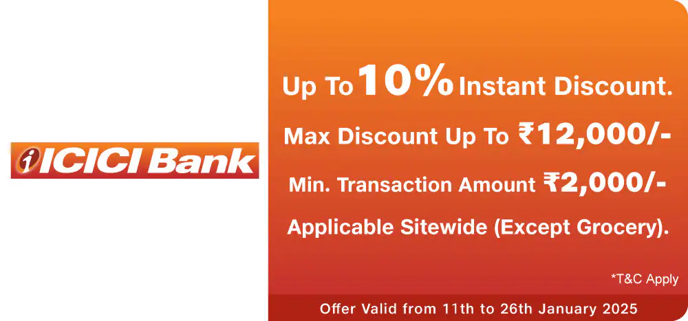 - Under this Offer, cardholder can avail Instant Discount with ICICI Bank Credit Cards & Credit Cards EMI and Debit Cards.
