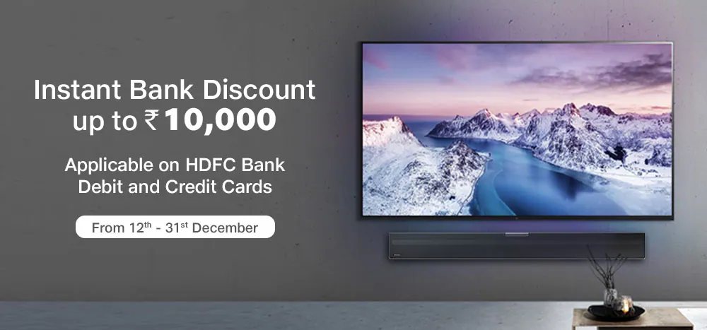 - Instant Bank Discount up to Rs. 10000 applicable on HDFC bank debit and credit cards. This offer is applicable on Credit card / Debit card Non-EMI transactions