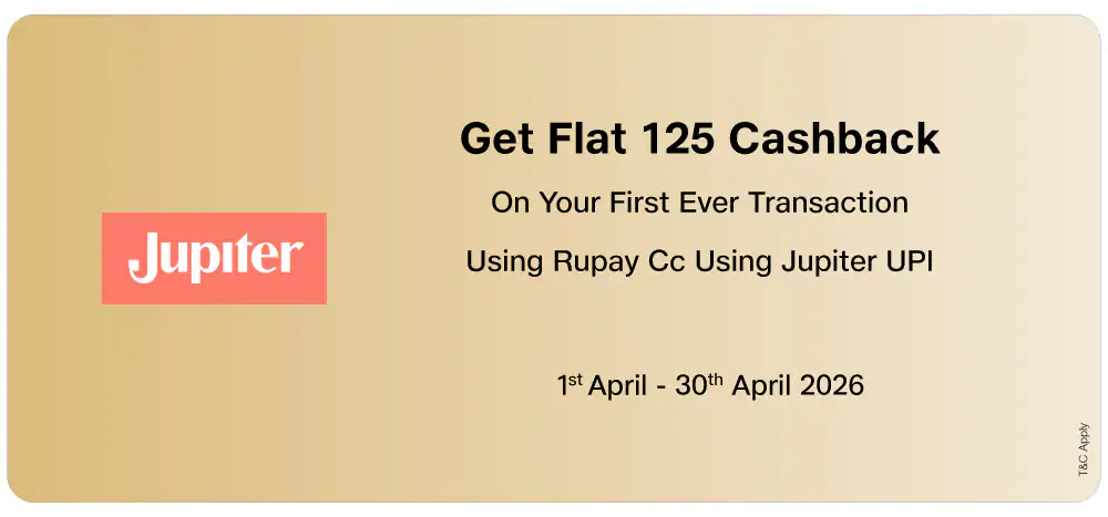 Get Flat INR 125 cashback on your first ever transaction using Rupay CC using Jupiter UPI.