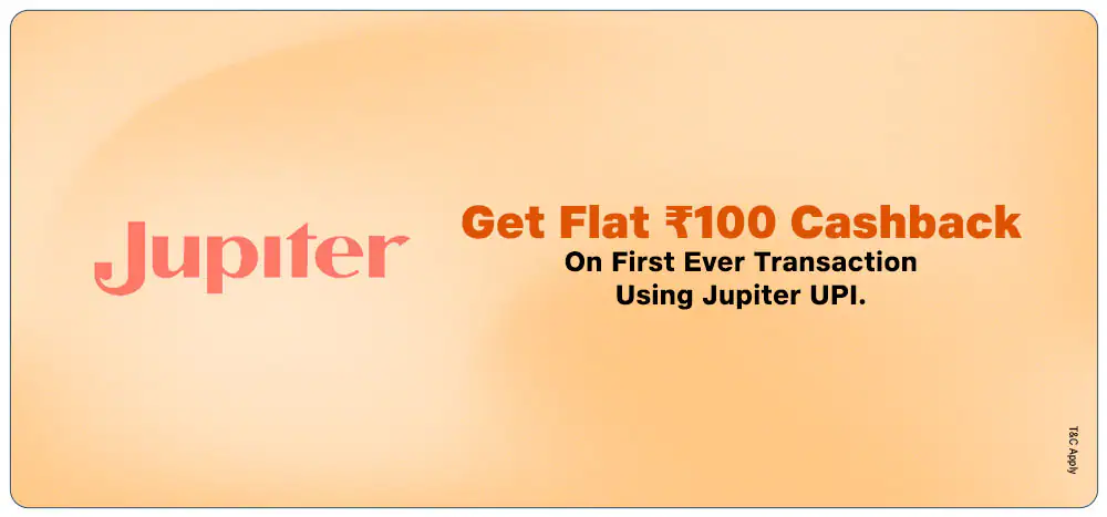 Get Flat Rs 100 cashback on first ever transaction using Jupiter UPI. Coupon Code