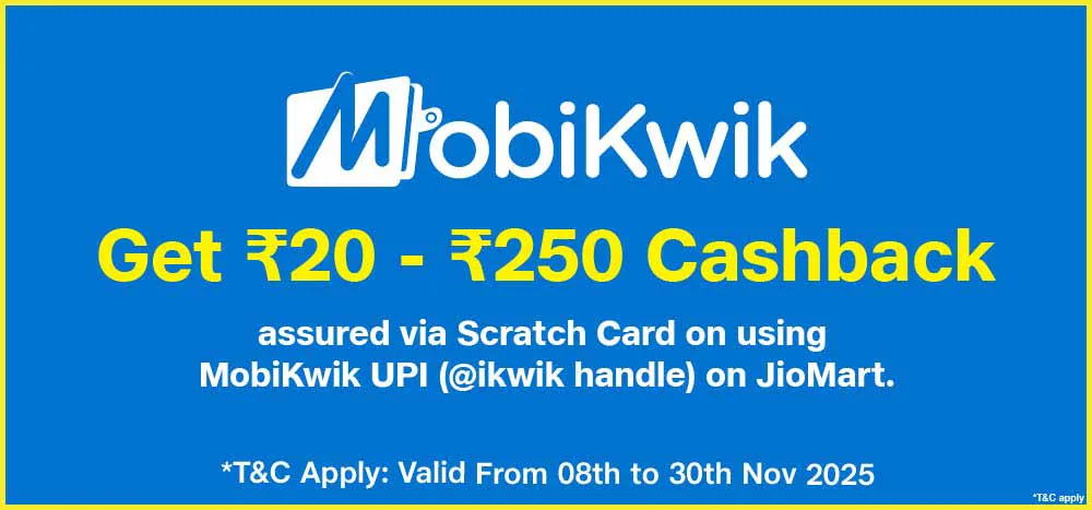 - Both MobiKwik & Jiomart reserve the right to discontinue/alter/change the offer without any prior notice