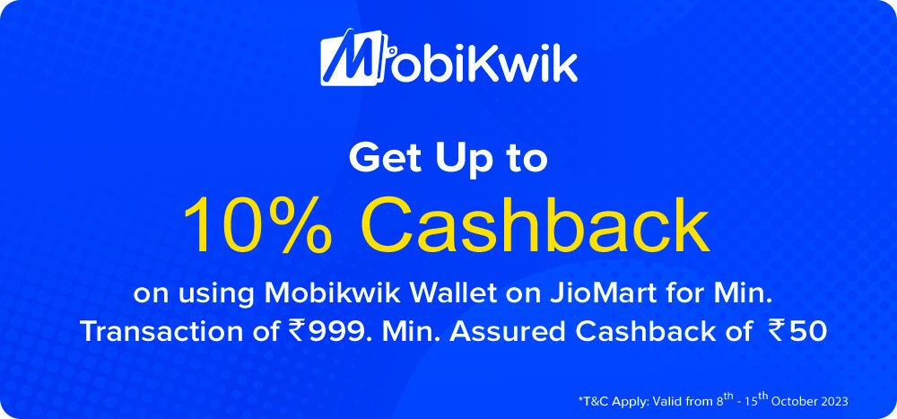 Mobikwik Wallet - Get upto 10% cashback on using Mobikwik Wallet on JioMart for Min. Transaction of Rs.999. Min. Assured Cashback of Rs.50 . T&C apply