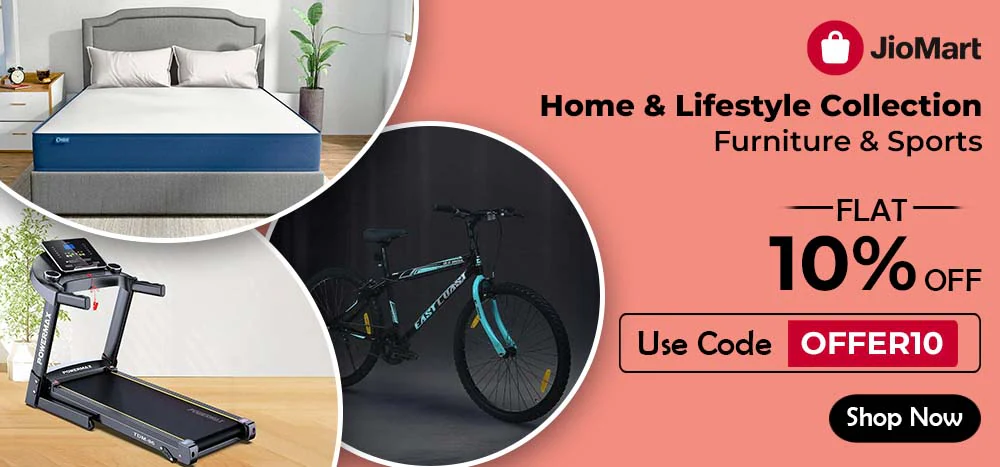 The Offer shall be valid on selected Home & Lifestyle, Furniture, Sports, Toys & Luggage products, sold by Reliance on JioMart. This does not include any third-party seller product and any other item or product that may be identified by Reliance from time to time.