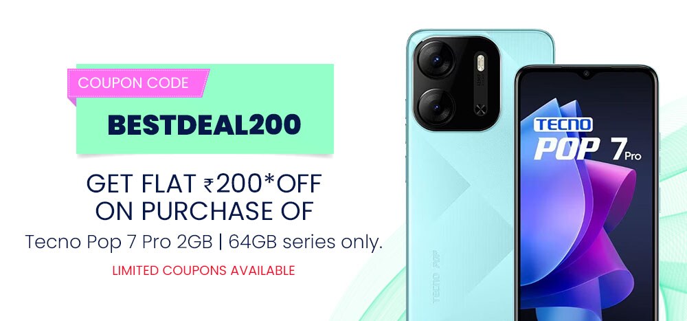 The Offer shall be valid on purchase of select Tecno Pop 7 Pro smartphones in Mobiles category sold by Reliance.