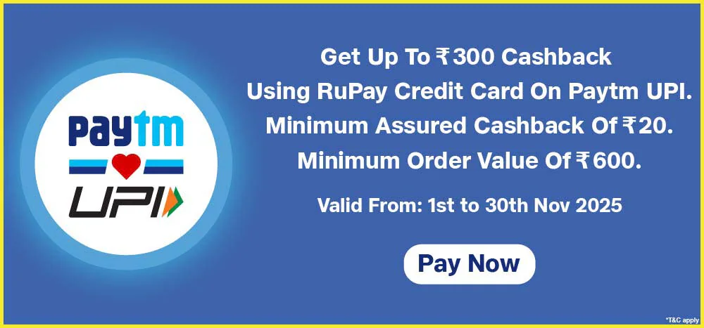 - Offer applicable only on paying through RuPay Credit Card using Paytm UPI.