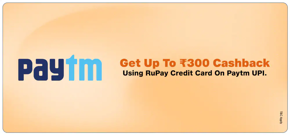 Get upto Rs. 300 Cashback using RuPay Credit Card on Paytm UPI. Coupon Code