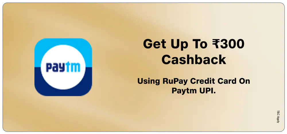 Get upto Rs. 300 Cashback using RuPay Credit Card on Paytm UPI. Coupon Code