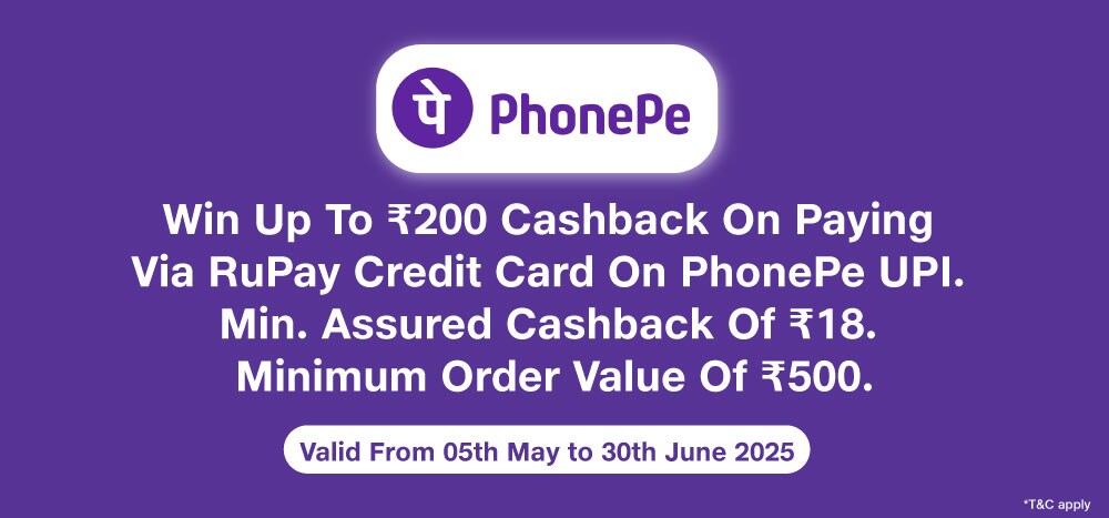 Win upto Rs 200 cashback on Rupay credit card transactions via PhonePe UPI. Minimum Transaction Amount: INR 500. T&C Apply.