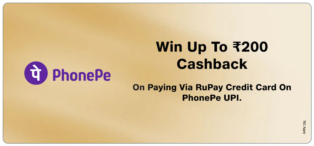 Win upto Rs 200 cashback on Rupay credit card transactions via PhonePe UPI. Minimum Transaction Amount: INR 500. T&C Apply.