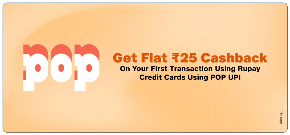 Rupay CC Cashback Offer: Get Flat INR 25 cashback on your first ever transaction using Rupay CC via POP UPI.