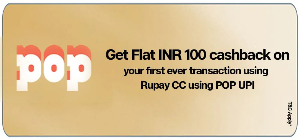 Rupay CC Cashback Offer: Get Flat INR 100 cashback on your first ever transaction using Rupay CC via POP UPI.