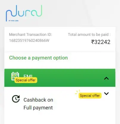 After clicking on above option, choose payment option i.e. 'EMI' or 'Cashback on Full-Swipe' to complete the transaction.