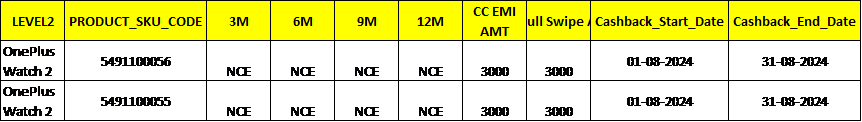 - Refer above table for min Article price for cashback offer eligibility, ie, the cashback offer will not be applicable if the article is sold at a price lower than the mentioned product display price or MTV of Rs 19999