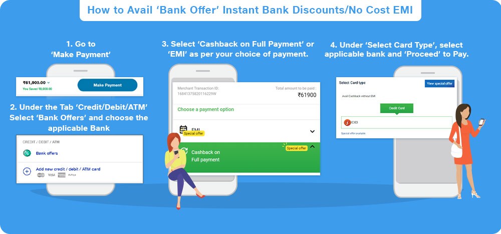 - To avail the offer, user need to select the option “Bank Offers” under the ‘Credit / Debit / ATM Card’ Tab on Payment Page and choose the applicable Bank