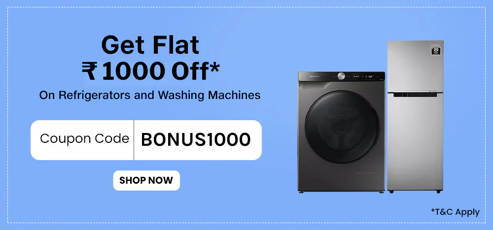- Upon the purchase of Eligible Products (defined below) sold by Reliance with a minimum cart value of Rs. 5000.00 (Rupees Five Thousand Only), the User will have the option to buy select Refrigerator, Washing Machine, and Air Conditioners sold by Reliance (“Offer Products”) at an instant discount of Rs. 1000.00 (Rupees Seven Hundred Fifty Only) off the selling price, within the Offer Period;