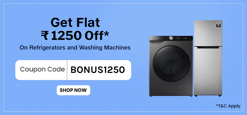 - Upon the purchase of Eligible Products (defined below) sold by Reliance with a minimum cart value of Rs. 5000.00 (Rupees Five Thousand Only), the User will have the option to buy select Refrigerator, Washing Machine, and Air Conditioners sold by Reliance (“Offer Products”) at an instant discount of Rs. 1250.00 (Rupees Seven Hundred Fifty Only) off the selling price, within the Offer Period;