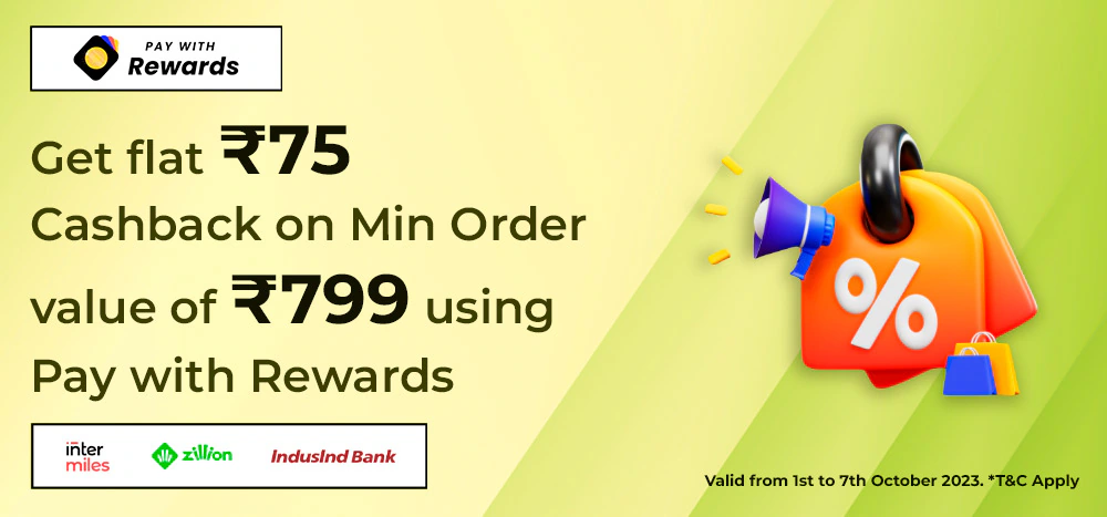 Get Flat Rs 75 cashback on Min Order value of Rs.799 using Pay with Rewards. Coupon Code