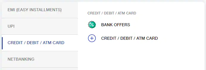 Or click on “Credit/ Debit/ ATM Card” on the payment page and choose “Bank Offers”