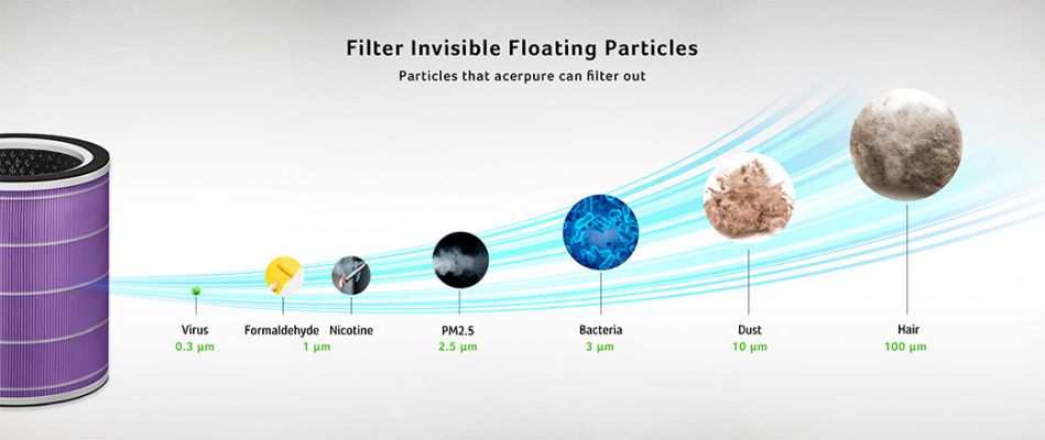 Take control of your air quality with the 4-in-1 HEPA filter and eliminate up to 99% of airborne bacteria1, 99.97% of ultrafine dust, PM1.0, and allergies.