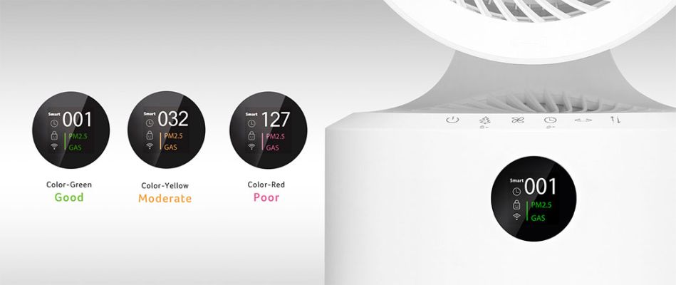 Put your feet up as the Air Quality and Gas Sensor regulates the purifier speed automatically and LCD displays real-time air quality data.