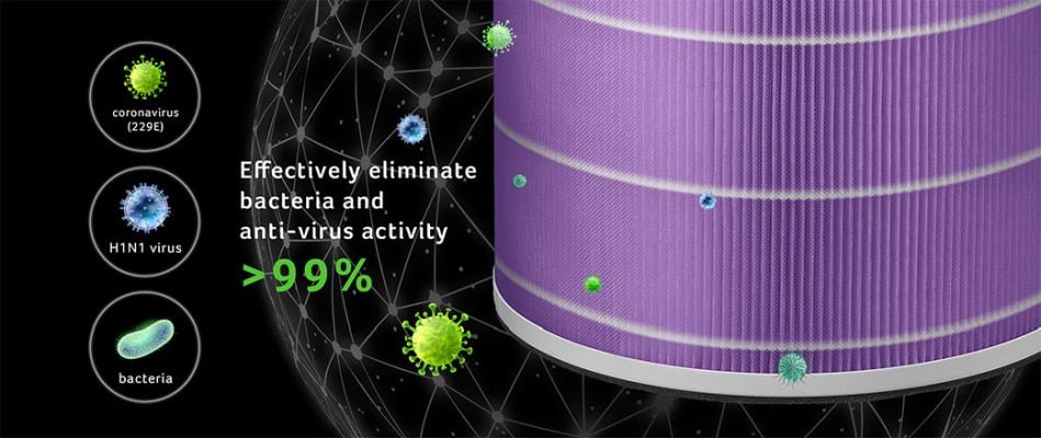 Effectively eliminate 99.99% bacteria, and 99% anti-coronavirus (229E) , influenza A (H1N1) virus activity. The HEPA Plus+ has been certified by the 3rd party research center.