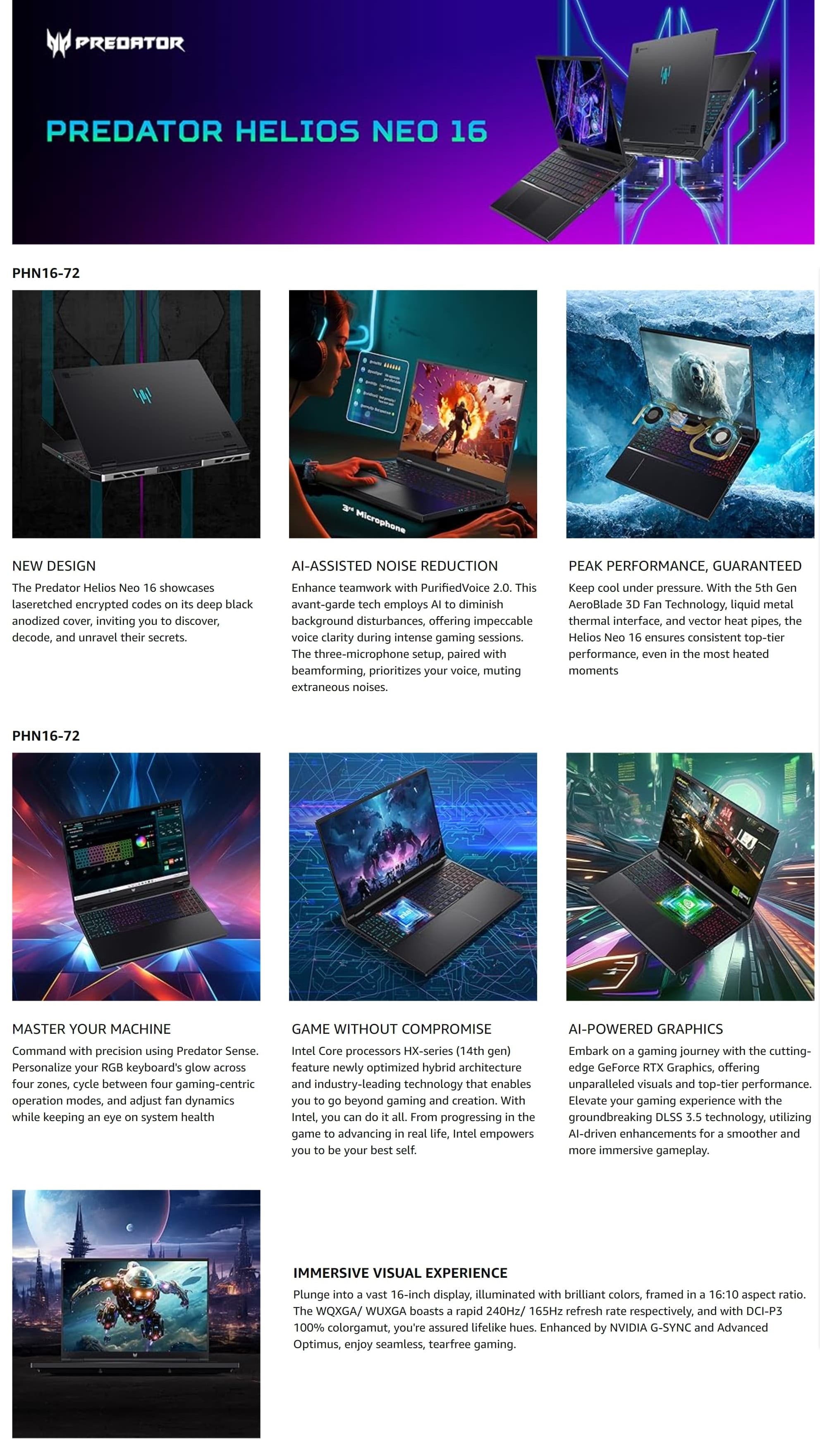 Acer Predator Helios Neo 16 PHN16-72 Gaming Laptop (Intel Core i7-14700HX/DDR5 16GB/512 GB /NVIDIA GeForce RTX 4050/Windows 11 Home/Office Home and Student 2021), 40.64 cm (15.6 inch), Abyssal Black