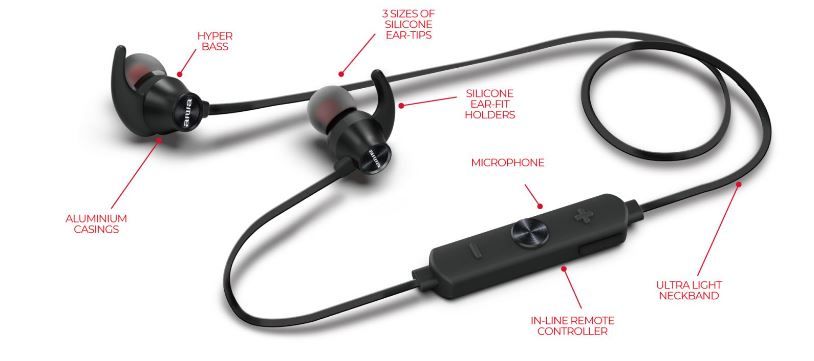 Device Protection Plan AddedAiwa ESBT-401 Bluetooth Wireless Neckband Earphones with Up to 8 hours Playback, Black
