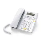 Alcatel T-58 Which comes in White color, a landline phone with Caller ID, Speaker System and a very attractive Design, which also includes Last Number Redial upto 5, 3 Direct Access Memory With Display to watch notifications for Calls. and !0 2-Touch Memories and many more things, Associated by Alcatel which Designs products for the ease oof people whi is mainting future values and Customer Satisfactions.