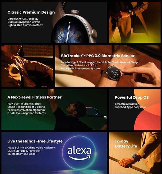 * This Amazfit GTS 3 Pro Smart Watch image is for illustration purpose only. Actual image may vary.